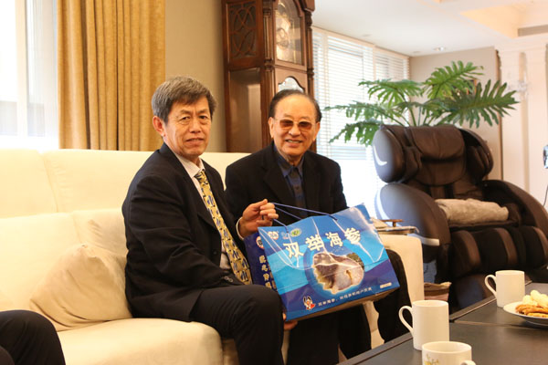 唐毓峻先生向两岸和平统一促进会王应球副会长转赠双举海参。